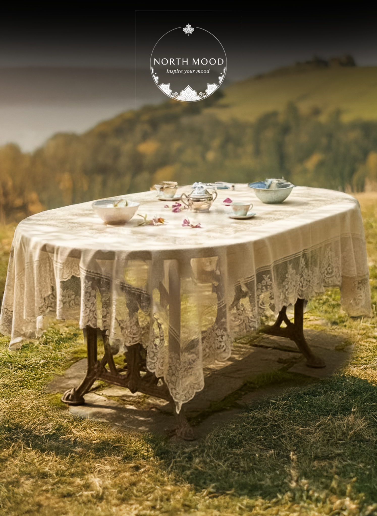 220x160cm lace tablecloth features a patterned design and stain-resistant material, making spills easy to clean ensuring practical, worry-free use.